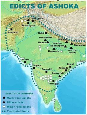 The set of 14 major rock edicts (or portions thereof) occur at: Kandahar (in Kandahar district, south Afghanistan) (only portions of rock edicts 12 and 13) Shahbazgarhi (Peshawar district, North-West Frontier Province, Pakistan) Mansehra (Hazara district, NWFP, Pakistan) Kalsi (Dehradun district, Uttarakhand) Girnar (Junagadh district, Gujarat) Mumbai–Sopara (originally at Sopara in Thane district, Maharashtra; now in the Chhatrapati Shivaji Maharaj Vastu Sangrahalaya, Mumbai; only fragments of rock edicts 8 and 9) Dhauli (Puri district, Orissa; separate rock edicts 1 and 2 replace major rock edicts 11–13) Jaugada (Ganjam district, Orissa; separate rock edicts 1 and 2 replace major rock edicts 11–13) Erragudi (Kurnool district, Andhra Pradesh)