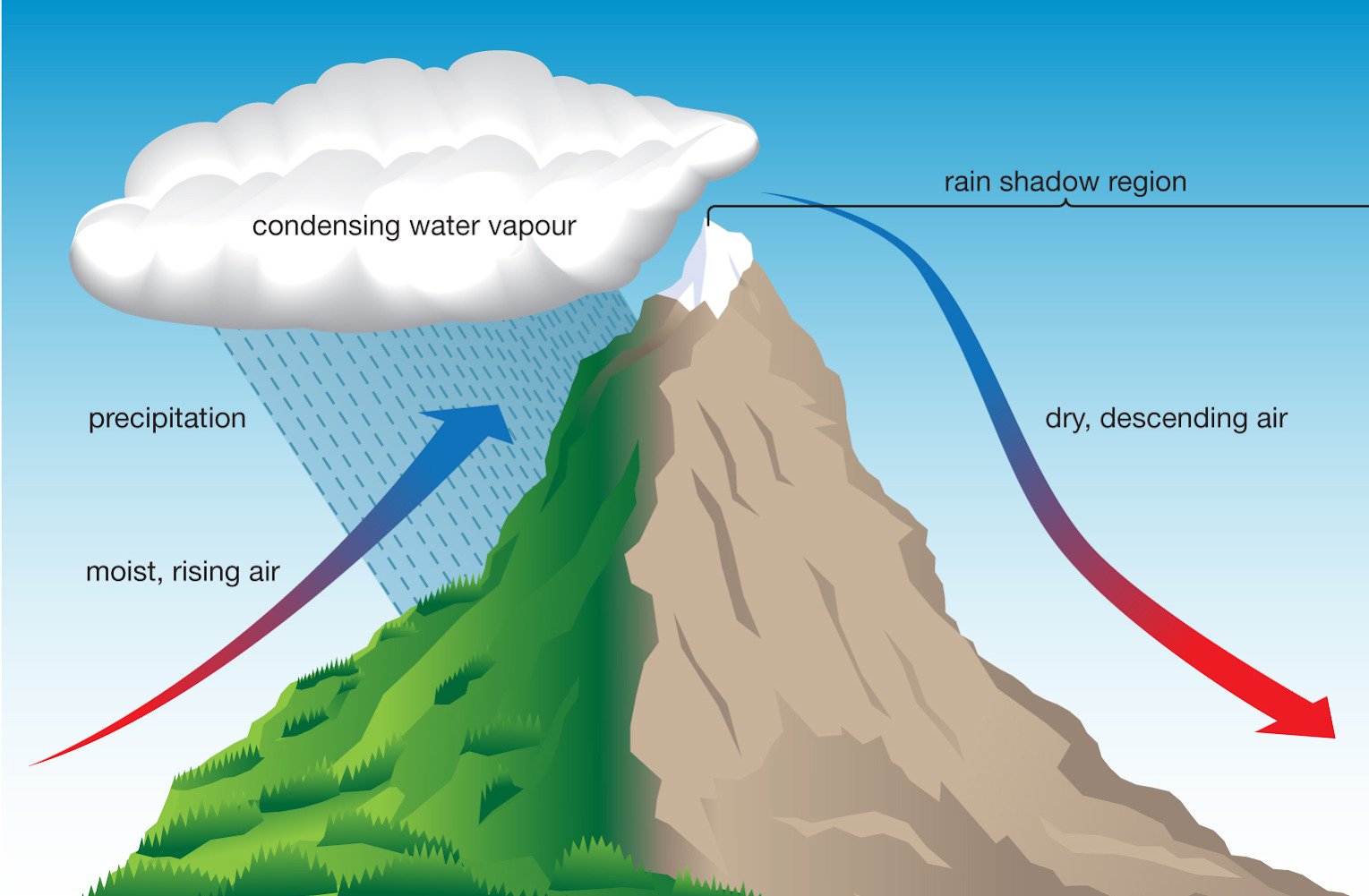This is because, in hilly areas, sometimes saturated clouds ready to condense into rain cannot produce rain due to the upward movement of the very warm current of air.