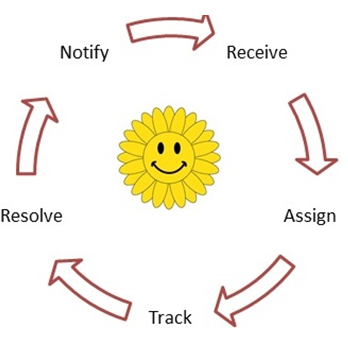 Receive: - receiving the complain from the consumer. Assign: - assigning the complaint to the particular department or ministry. Track: - Tracking the complaint whether the complaint was solved or not. Resolving: - Resolving the complaint of the consumer and lastly Notify: - Notifying the consumer that the complaint has been resolved .