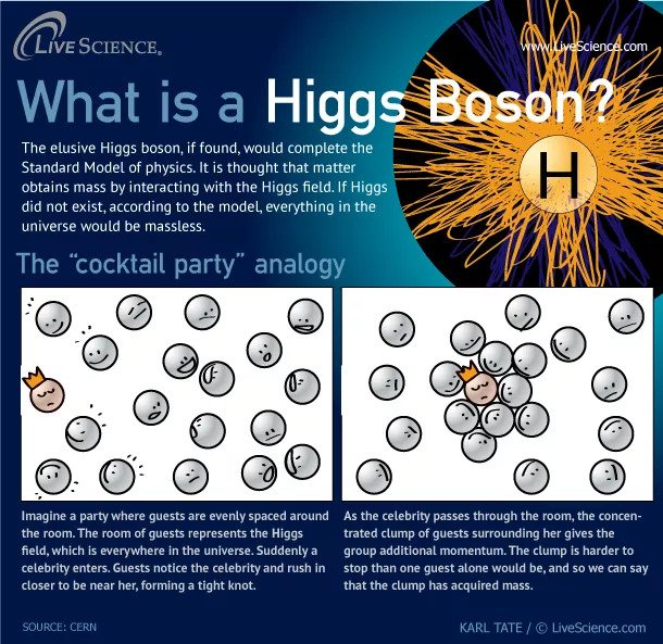 The Higgs boson carries the force that a particle experiences when it moves through an energy field, called the Higgs field.