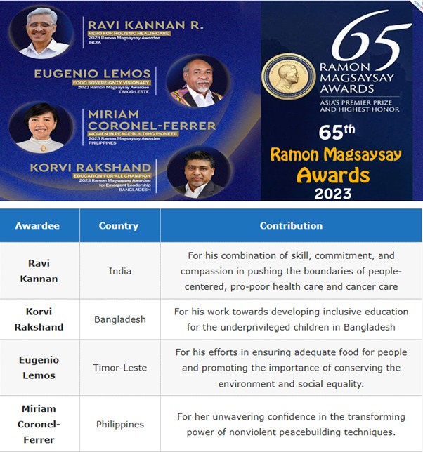 This prestigious award honors individuals and organizations in Asia for their exceptional contributions to society across various domains.