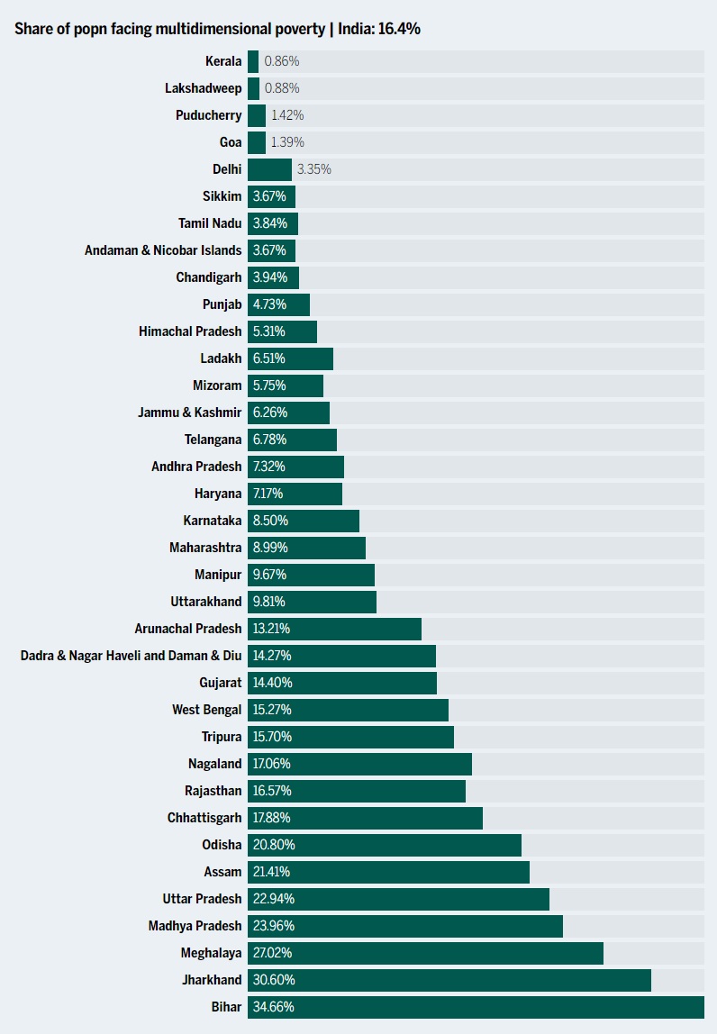 State-wise poverty status on the basis of the multidimensional poverty index: