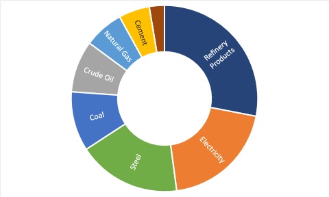 Diagram showing the eight core industries and their weightage in the Index of Industrial Production