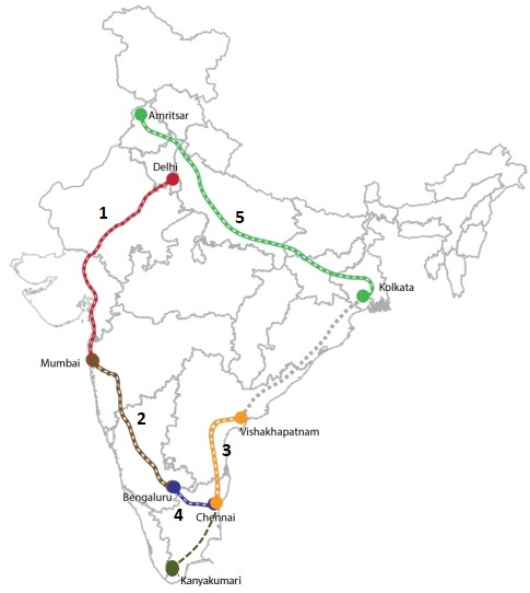Five industrial corridors have been launched by the Government of India. These projects are expected to play a critical role in increasing the contribution of manufacutirng sector to 25% of the GDP by 2025.
