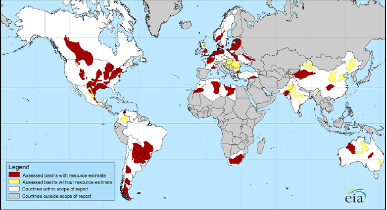 Shale gas is a natural gas produced from shale, a type of sedimentary rock. Due to constant announcements of shale gas recoverable reserves, as well as drilling in Central Asia, South America and Africa, deepwater drilling, estimates are undergoing frequent updates, mostly increasing. Since 2000, some countries, notably the US and Canada, have seen large increases in proved gas reserves due to development of shale gas, but shale gas deposits in most countries are yet to be added to reserve calculations. Some analysts expect that shale gas will greatly expand worldwide energy supply. Figure shows the major shale gas fields of the word. China is estimated to have the world's largest shale gas reserves followed by USA, Argentina, Mexico, South Africa, Australia, and Canada