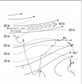 Jet streams are concentrated narrow bands of fast flowing and strong winds in the upper troposphere of the earth that significantly affect global weather phenomena. There are three types of jet streams: