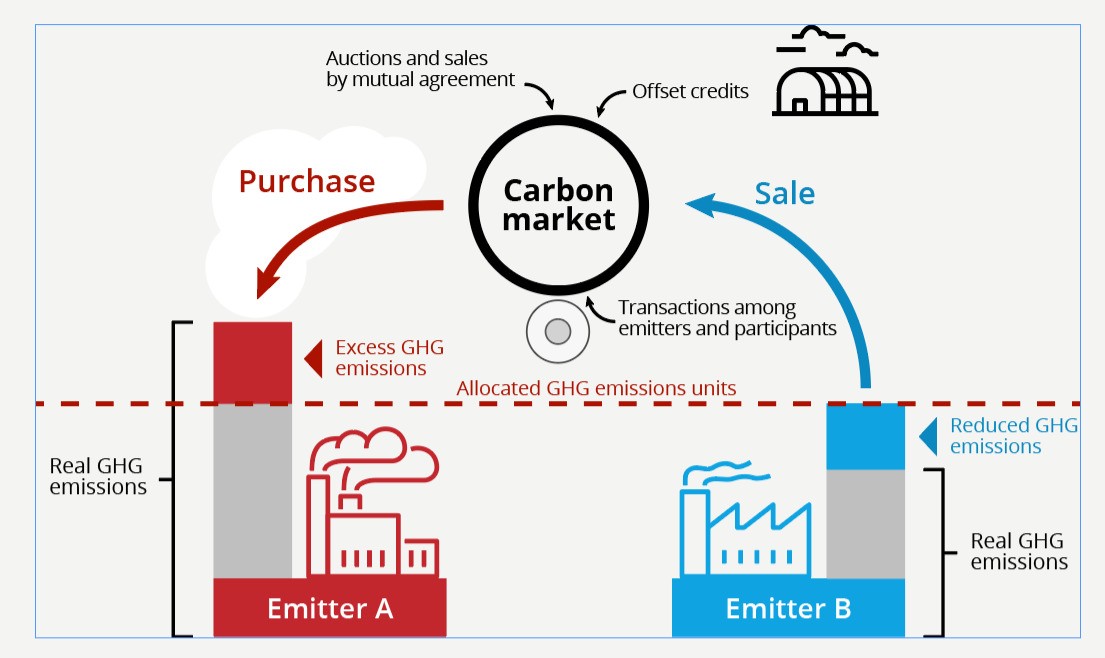 A carbon market allows buying and selling of rights to emit carbon dioxide.