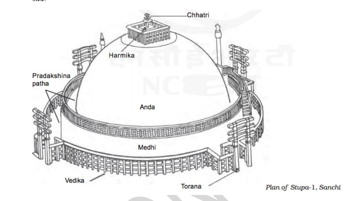 The Buddhist stupa consists of a cylindrical drum and a circular anda with a harmika and chhatra on the top. These parts of stupa remained consistent