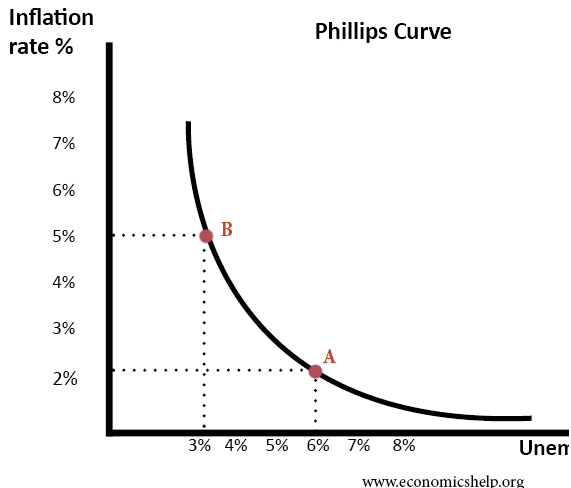 2. According to Philips curve, there exist inverse relationship between rate of unemployment and rate of inflation.