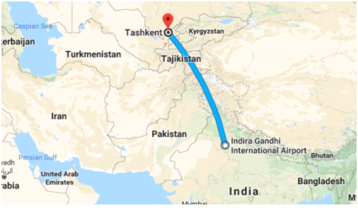 On a World Map, a straight line joining New Delhi to Tashkent will NOT pass through which of these countries?