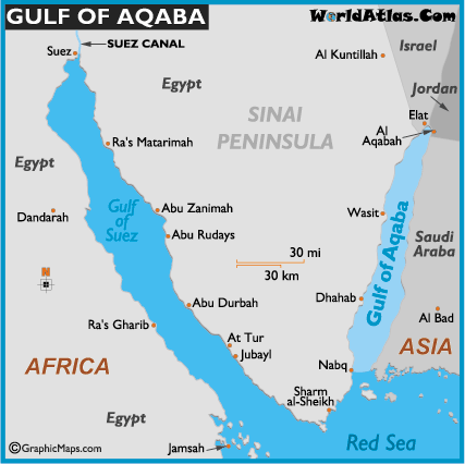 Gulf of Aqaba lies between-