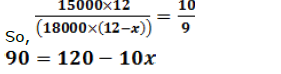 Satish, Bhavya and Abhishek entered into a partnership with Rs 15000, Rs 18000 and Rs. 24000 respectively. Abhishek joined them after ‘x’ months and Bhavya left ‘x’ month before the end of year. If they share profit at the end of the year. If they share profit in the ratio 10: 9: 12. Find the value of ‘x’.