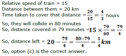 Two boats, travelling at 5 Km/h and 10 Km/h respectively, head directly towards each other. They are now at a distance of 20 km from each other. How far apart are they (in Kms) one minute before they collide?