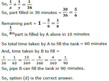 A and B can fill the tank in 36 minutes Let the time taken by pipe A to fill the tank = x minutes Ans, the time taken by pipe B to fill the tank = y minutes