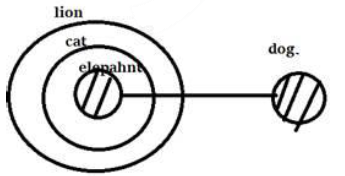 I. Some lion is dog.-false II. Some cat are dog is a possibility. -true III. Some dog are elephant.-false