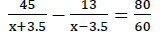 Difference of speed of boat in downstream and upstream is 7km/hr and the time taken by the boat to travel 45 km in downstream is 80 minutes more than the time taken to travel 13 km in upstream. Due to cyclone, speed of current becomes twice and thus it can cover D km in upstream in time which is equal to new speed of current. Find D? (Note: speed of boat in still water is multiple of 5)