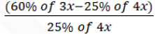 ATQ, (100-25)% of Boys = Total number of girls ⇒ 75% of B= G ⇒ Boys : Girls = 4 : 3 Let number of Boys & girls respectively 4x , 3x Required% = × 100 = 80