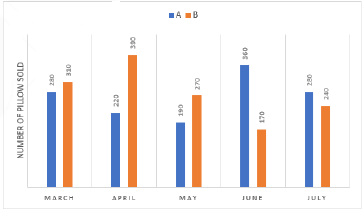 Direction () : Study the following graph carefully and answer the questions given below: The given bar graph depicting the number of pillows sold by two stores A and B in the given 5 months.