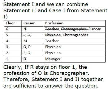 Six persons – M, N, O, P, Q and R – stay on different floors of a six-storey building (ground floor is numbered as floor 1 and top floor is numbered as floor 6). Each of them is in a different profession, via Singer, Dancer, Physician, Teacher, Choreographer