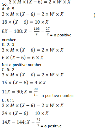 If a group of 3 men can complete a work in 6 hours less than the time taken by a group of 2 women. Which of the following given ratio of their efficiency can give us the value of time in positive number.