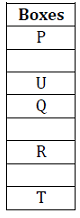 Statements II: One box is placed between Q and R. Two boxes are placed between P and Q. One box is placed between T and R. Box P does not adjacent to box T. Box U is placed exactly in between the boxes P and the box which is placed just above the box R.