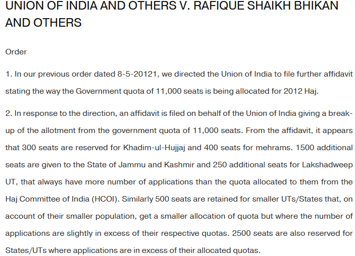 I. In a recent Supreme Court verdict pronounced by Justice Markandeya Katju and Justice Gyan Sudha Mishra, the court upheld the constitutionality of the Haj subsidy