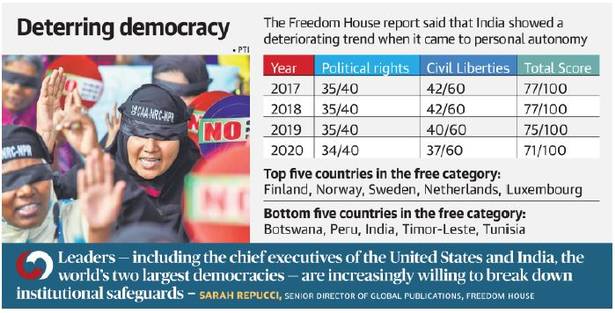 Daily Current Affairs on Freedom in the world 2020 report for General Knowledge ( All Exams) Preparation