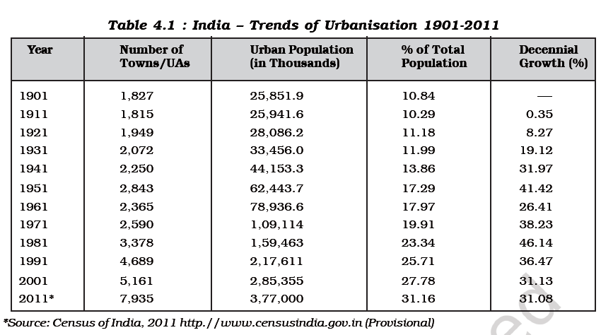 Growth of population is the change in the number of people living in a particular area between two points of time. Its rate is expressed in percentage. Population growth has two components namely; natural and induced. While the natural growth is analyzed by assessing the crude birth and death rates, the induced components are explained by the volume of inward and outward movement of people in any given area. The decadal and annual growth rates of population in India are both very high and steadily increasing over time. The annual growth rate of India’s population is 1.64 percent (2011). The growth rate of population in India over the last one century has been caused by annual birth rate and death rate and rate of migration and thereby shows different trends. As per the 2001 census, 72.2% of the population lives in about 638,000 villages and the remaining 27.8% live in more than 5,100 towns and over 380 urban agglomerations. In 1901 the world population was 1.6 billion. By 1960, it became 3 billion, and by 1987, 5 billion and in 1999, 6 billion. Currently, one billion people are added every 12 – 13 years. When we see the population growth in India it will be observed that while the population of the country was 27.13 crore in the year 1900, it decreased to 26.31 crores in 1925 and increased to 35.04 crores in 1950 and 36.23 in 1951. From here onwards the population growth took exponential proportions of growth to 43.88 crores in 1961, 54.79 crores in 1971, 68.52 crores in 1981, 84.39 in 1991, and 102.70 crores in 2001.