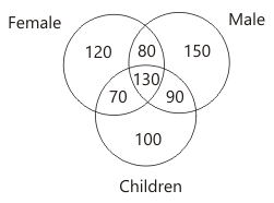 The diagram shows the survey on sample of 500 persons with reference to the number of males, females and children. 90 represents the group of which of the following persons ?