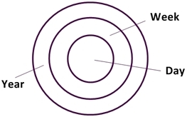 An year consists of weeks, and a week consists of days. Hence, option 1 is the correct answer.