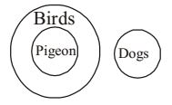 Which one of the following diagrams represent correct relationship among pigeon, birds, dogs?
