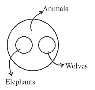Which of the following diagrams correctly represents elephants, wolves, animals?