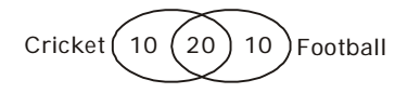 According to question , Given :- Total numbers of players = 40 Numbers of players playing cricket = 30 Numbers of players playing cricket and football both = 20 ∴ Numbers of players playing football = 20 + 10 = 30