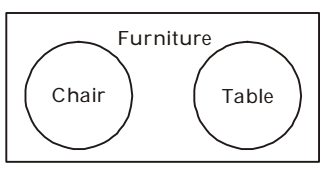 Which one of the following figures represents relationship among furniture, chairs, tables?