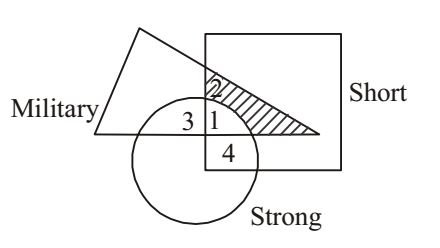 In the given diagram, Circle represents strong men, Square represents short men and Triangle represents military officers. Which region represents military officers who are short but not strong?