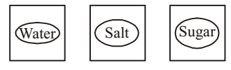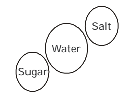 As per the above given question , we have Water, Salt and Sugar are three different entities. It shows that option ( 2 ) gives the best relationship between water, salt and sugar.As shown in given figure.