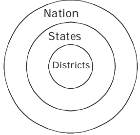 Which one of the following diagrams best depicts the relationship among Nation, States and Districts?.