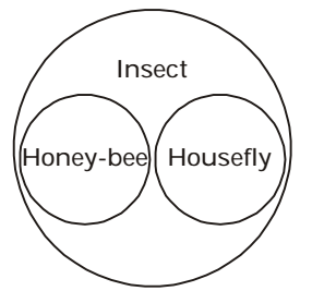Which one of the following diagrams best depicts the relationship among Honey-bee, Insect and Housefly?