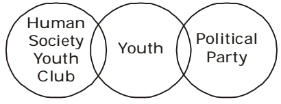 Which one of the following diagrams best depicts the relationship among Human Society – Youth Club, Political Party and Youths?