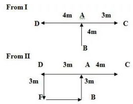 II.Point F is3m to south of point D. Point C is 4m to the east of point A. Point A is 3m to the north of point B. Point A lies on the line formed by joining points C and D.