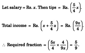 A waiter's salary consists of his salary and tips. During one week his tips were 5/4 of his salary. What fraction of his income came from tips ?