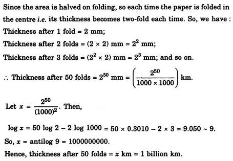 If a 1 mm thick paper is folded so that the area is halved at every fold, then what would be the thickness of the pile after 50 folds ?