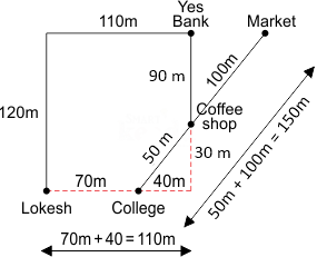 Lokesh moves 120 m in north direction from his home and then turn right After walking 110 m he reach...........