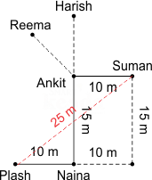 Six persons – Reema, Naina, Suman, Ankit, Harish and Plash, each having a different age were sitting on the different benches in a park situated at some distance from each other. No person was sitting in west of Reema, Ankit, and Harish. Oldest person was sitting 15 m north of Naina. Suman was sitting 10 m east of person Ankit. Youngest person was sitting northwest of Ankit. Ankit was sitting somewhere in between Harish and Naina vertically. Ankit was older than both Harish and Plash. Plash was third oldest person among all the persons and was 10 m west of third youngest person. Harish was younger than only one person.