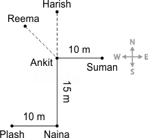 Six persons – Reema, Naina, Suman, Ankit, Harish and Plash, each having a different age were sitting on the different benches in a park situated at some distance from each other. No person was sitting in west of Reema, Ankit, and Harish. Oldest person was sitting 15 m north of Naina. Suman was sitting 10 m east of person Ankit. Youngest person was sitting northwest of Ankit. Ankit was sitting somewhere in between Harish and Naina vertically. Ankit was older than both Harish and Plash. Plash was third oldest person among all the persons and was 10 m west of third youngest person. Harish was younger than only one person.