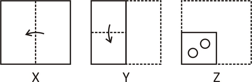 A sheet has been folded in the manner as shown in X, Y and Z respectively and punched. You have to choose from the alterantives how it will look when unfolded.