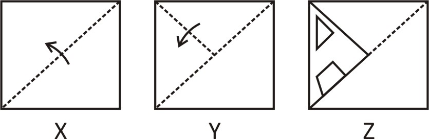 A sheet has been folded in the manner as shown in X, Y and Z respectively and punched. You have to choose from the alterantives how it will look when unfolded.