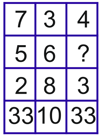 In column I; 7×5-2=33 In column II; 3×6-8=10 In column III; 4×9-3=33