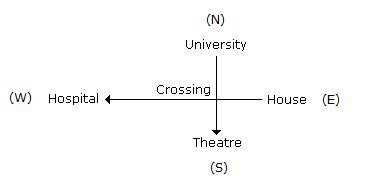 Hemant in order to go to university started from his house in the east and came to a crossing. The road to the left ends in a theatre, straight ahead is the hospital. In which direction is the university?