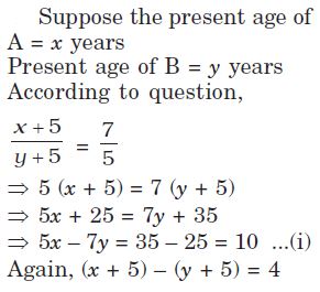 5 year hence, ratio of ages of A and B will be 7 : 5 and difference between their ages will be 4 years. What are present ages (in years) of A and B respectively?